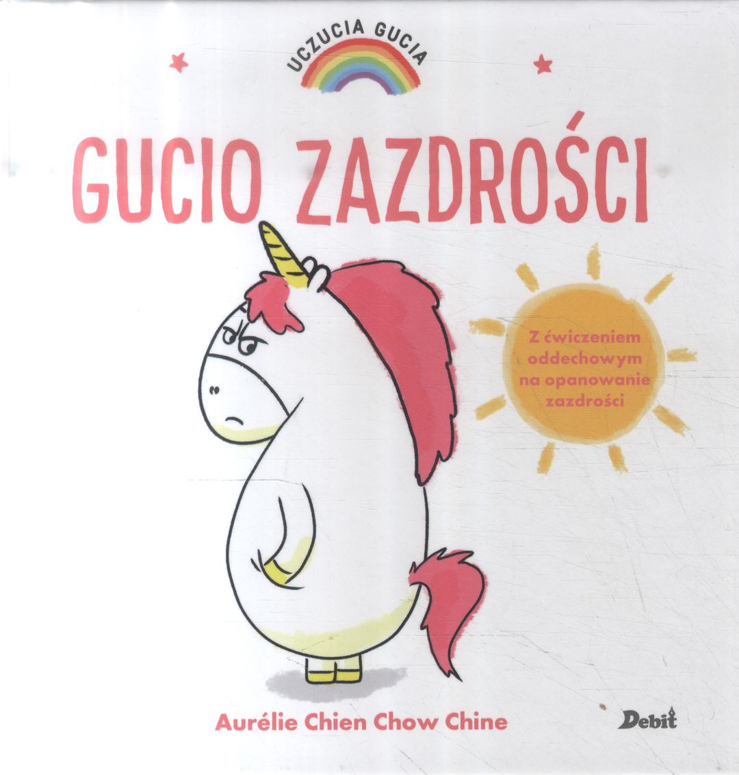 Gucio to mały jednorożec taki jak wszystkie. Albo prawie… Jego tęczowa grzywa zmienia kolor zależnie od tego, co Gucio odczuwa. Dziś Gucio jest zazdrosny. Uważa, że wszyscy wolą się zajmować jego kuzynką Tosią. Zobacz, w jaki sposób uda mu się odzyskać dobry humor! Nowa seria historyjek, które uczą nazywania emocji i panowania nad nimi. W każdej książeczce opisano jedno uczucie. Na końcu historyjki znajdują się bardzo proste ćwiczenia, które pomogą dziecku wyciszyć się i zapanować nad emocjami.[empik].