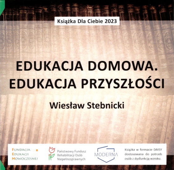 Edukacja domowa : edukacja przyszłości [Dokument dźwiękowy] / Wiesław Stebnicki. - [Warszawa] : Fundacja Edukacji Nowoczesnej ; [Jelenia Góra] : Fundacja Moderna, [2023]. - 1 płyta audio CD : zapis cyfrowy, stereo. ; 12 cm.